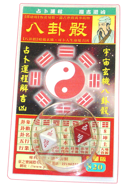 「八卦骰」共有八面,每面代表一卦,各有不同數字及卦象